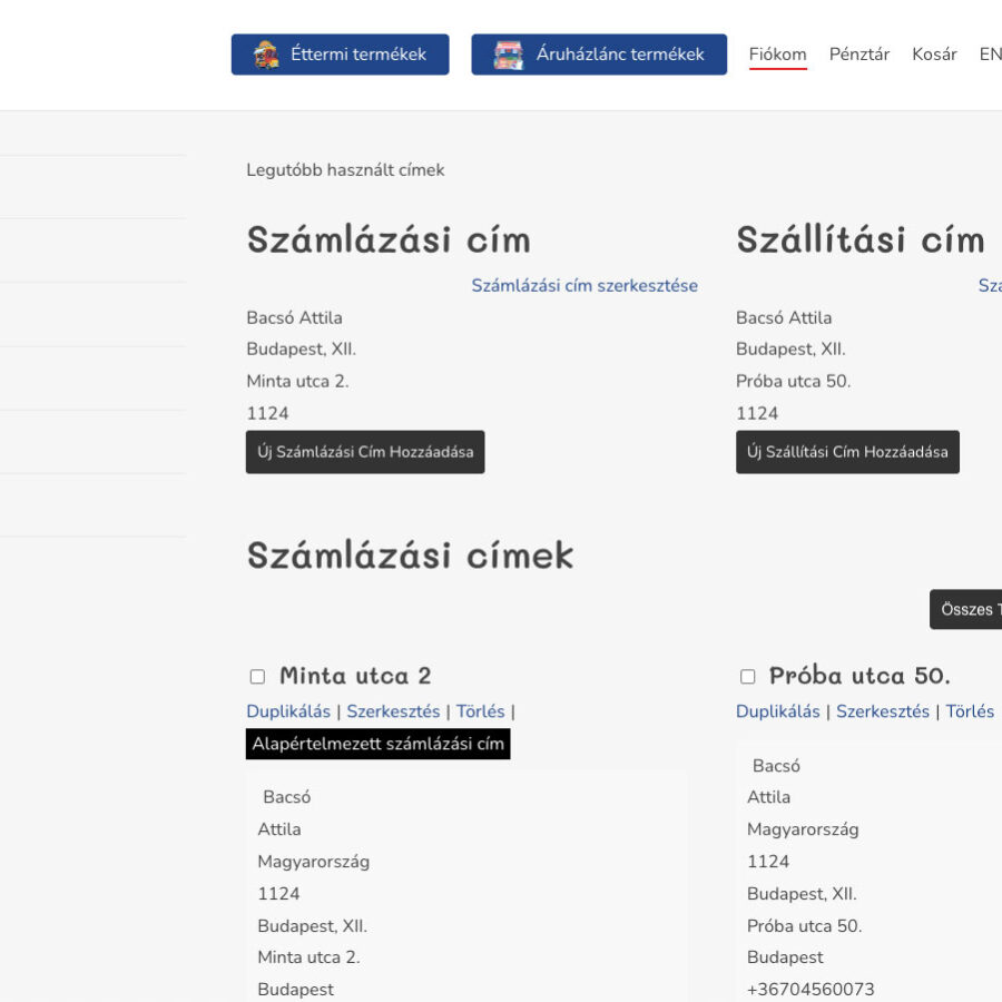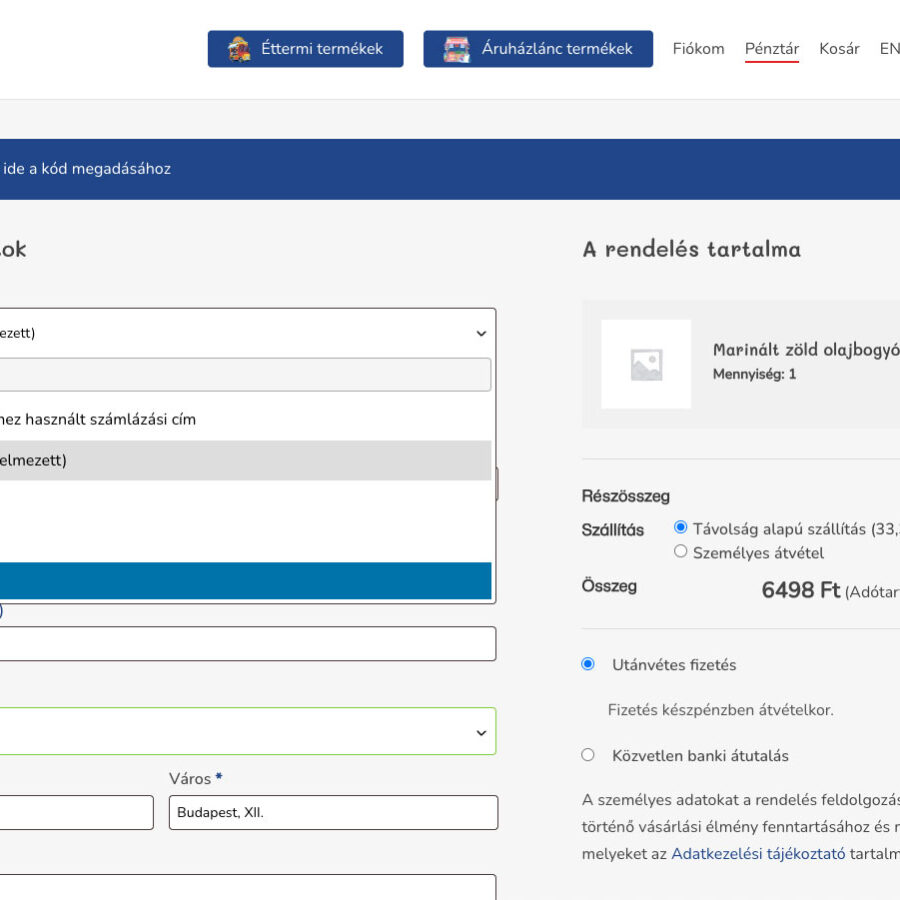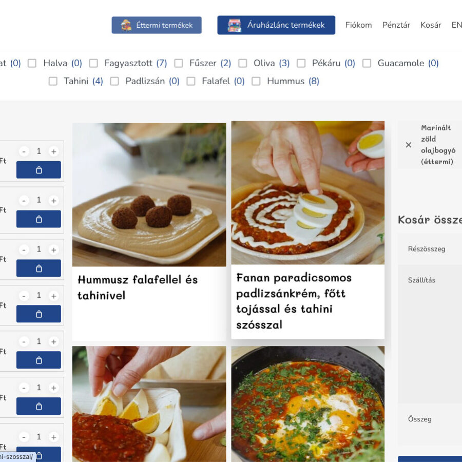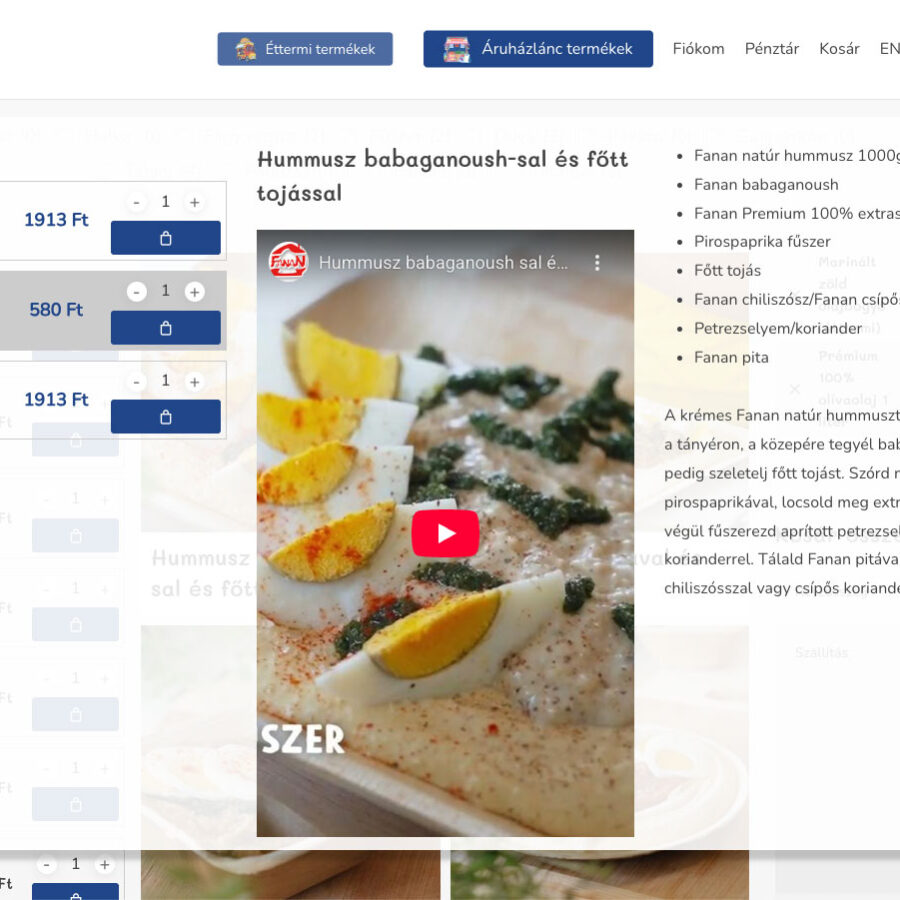 Ezen kívül a kereskedelmi vezető kérésére fejlesztettem az éttermi termékekhez egy receptlistát, amelyhez a webáruházban lévő termékekből lehet kiválasztani az összetevőket és videó is tartozik hozzá. Szinte az összes funkciót én programoztam hozzá, így nem kellett minden egyedi kéréshez bővítményeket használni.