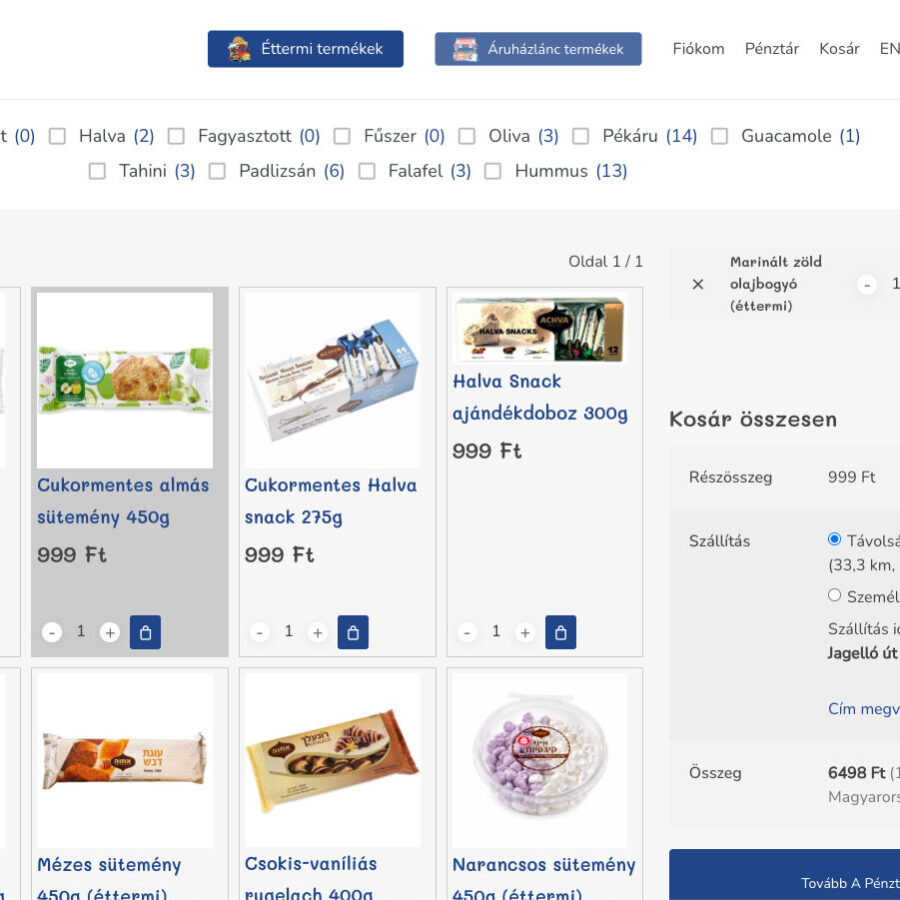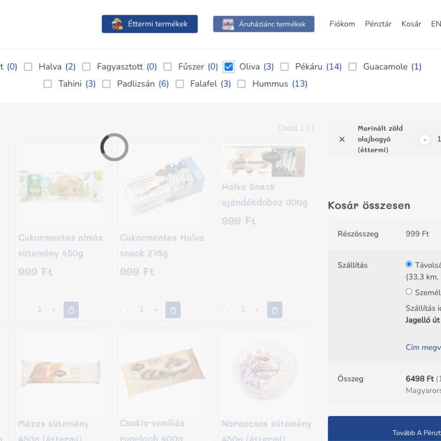 - Gyors, ajax-alapú termékkereső és kosárműveletek
